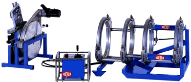 Gewicht ca. 112 kg (ohne Zubehör), für PE-, PP-und PVDF- Rohre und Formteile von DA 200 bis DA 450, alle Nenndruckstufen. Mit abnehmbarer 4-ter Spannbacke, robuste, leichte Schweissmaschine für den Einsatz im Graben.