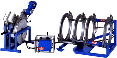 Gewicht ca. 112 kg (ohne Zubehör), für PE-, PP-und PVDF- Rohre und Formteile von DA 200 bis DA 500, alle Nenndruckstufen. Mit abnehmbarer 4-ter Spannbacke, robuste, leichte Schweissmaschine für den Einsatz im Graben.
